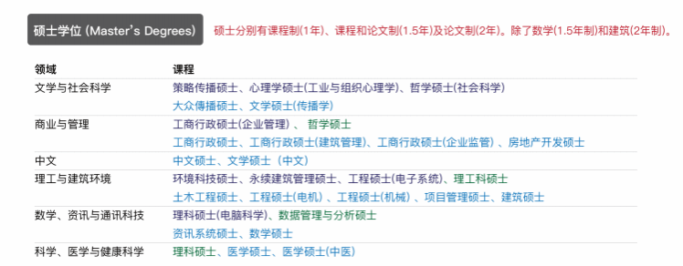 硕士学位 课程制(1-2年) 课程和论文制(1-5年) 论文制(2年) |