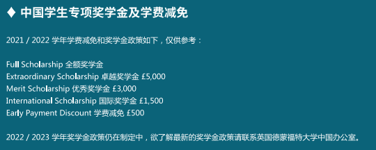 *费用仅供参考,具体学费请参考德蒙福特大学当年最新网站收费标准