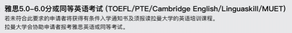2. 雅思或其他同类考试取得4.5分以上,可配读德蒙福特大学语言课程(4.5分 13周;5.0分 8周;5.5分 4周)